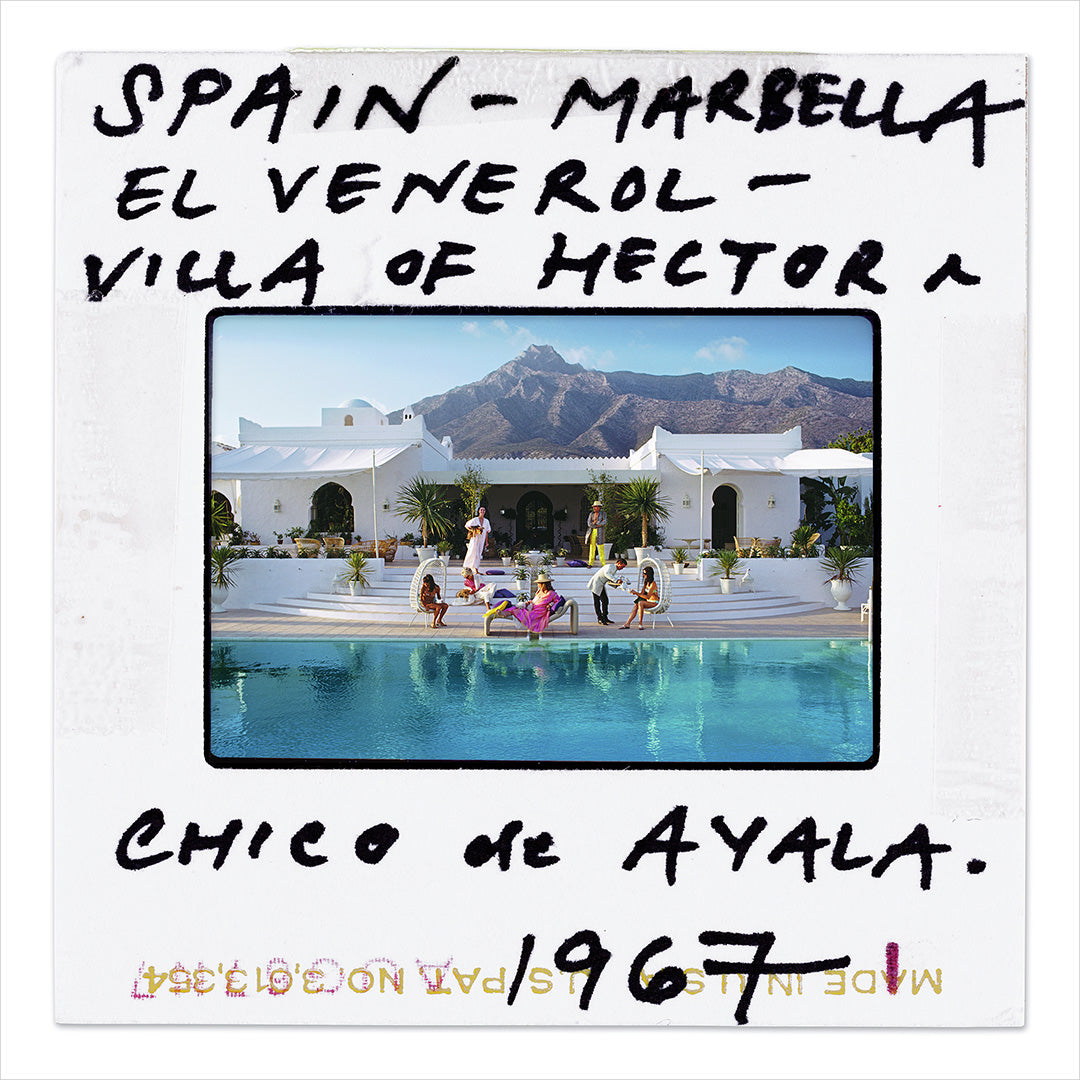 Slide of a photograph showing El Venero, the Moorish villa of Hector and Chico de Ayala in Marbella, Spain, 1967. (Photo by Slim Aarons)