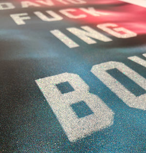 Each print has a small section of the actual ticket stub sewn into the print, from the 1983 David Bowie show at Milton Keynes Bowl, attended by Buonaguidi.