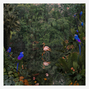 Applying washes, paints, ink, gold leaf and chalk to the constructed images, Nadia’s original photography disappears from documentary single imagery toward a more painterly poetic interpreted view of the world.