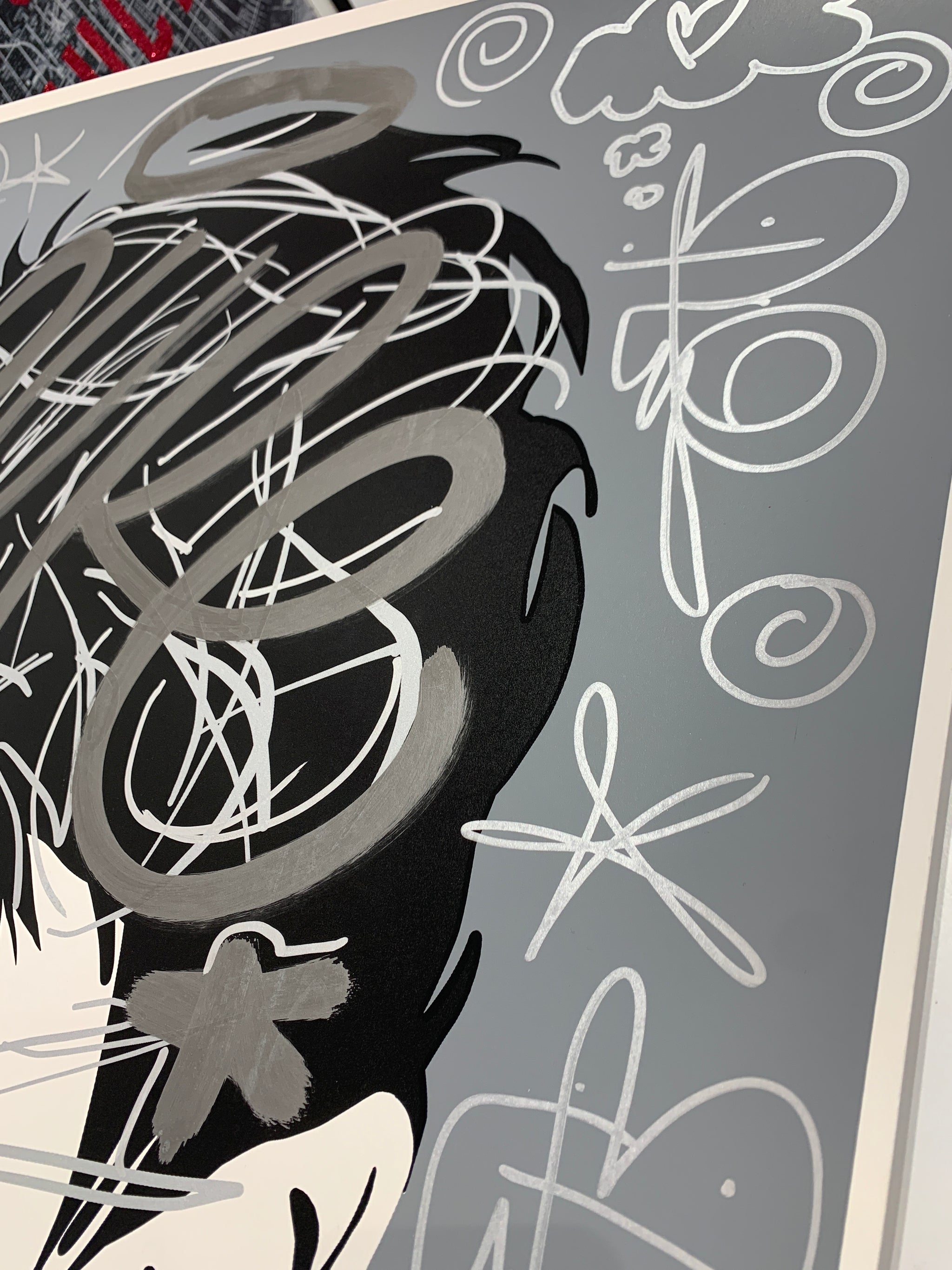 These are all 1/1 unique editions that are attacked with stencil, spray paint and freehand tags using KRINK, POSCA and various drippy Ink mops. Each one is a unique piece made by Pure Evil.